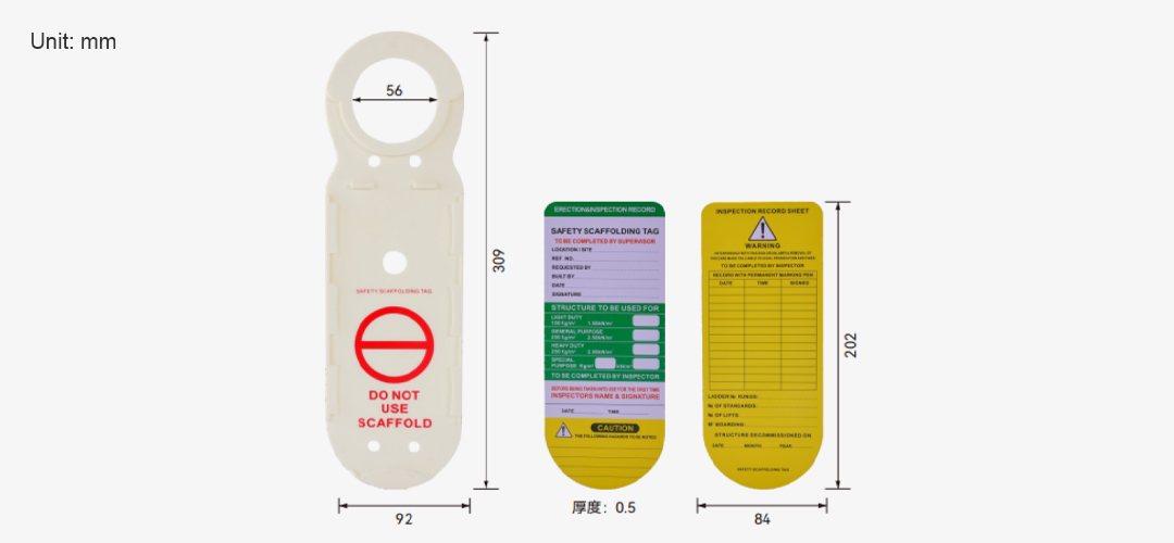 • 红牌:卡纸未嵌入挂牌,以挂牌本身红色的警示文字和图案展示,表示脚手架禁止使用。